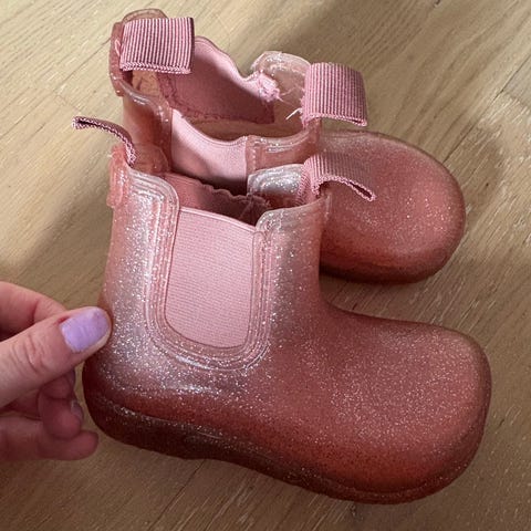 Fôrede gummistøvler fra CeLaVi med glitterdetaljer. Støvlene er kun prøvd på, men passet dessverre ikke. Støvlene fremstår noe store i størrelsen.