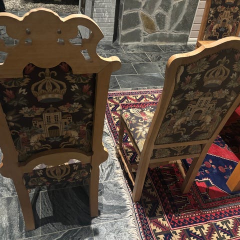Selger 6 håndlagde spisestoler fra Tranekær Danmark, designet av Niels Jørgen Haugesen. Klassisk skandinavisk design i solid treverk. Sete er ikke i opprinnelig farge da den er trekt. 5 av stolene er i god brukt stand, men den ene har løs sete (kan fikses med noen skruer), jevn slitasje etter alder.