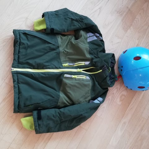 Jakke i vind og vanntett materiale. Perfekt som overgangsjakke. Nøytrale farger unisex. Pent brukt. Fin å ha i barnehagen over en overtrekksbukse nå i høst.