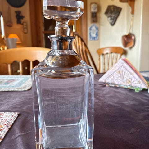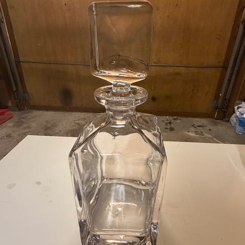 LEKKER KRYSTALL/GLASS KARAFFEL I FIRKANTET FORM MED GLASSKORK (H:25CM.)