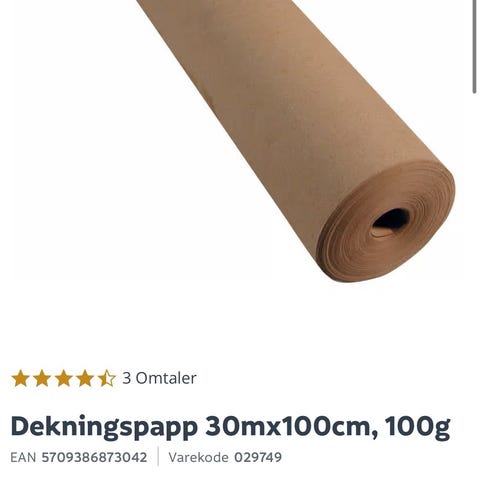 Har en rull med 7 m + igjen og en rest som er ca 52 cm bred. En god del igjen av den også. Ikke målt. Meget fornøyd med resultatet. Rester etter oppussing. Sender ikke.