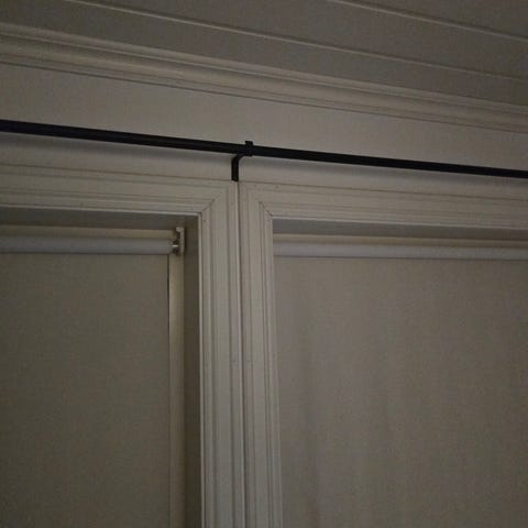 Fin gardinstang med «kongle» i hver ende av stanga. 140-250/260. Diameter 2,7 cm