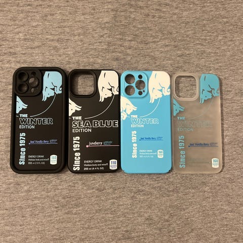 Apple telefondeksel med transparent design og blå tekst. Dekselet har trykk med teksten 'The Winter Edition Since 1975' og en beskrivelse av vaniljesmak. Materialet er plast, og dekselet er laget for å beskytte telefonen mot riper og støt.