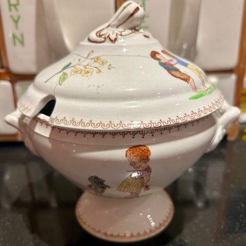 Pen smørbutt. Stemplet. Merket med dato på lokkhanken 21.8.26. Noe slitasje på dekor.
