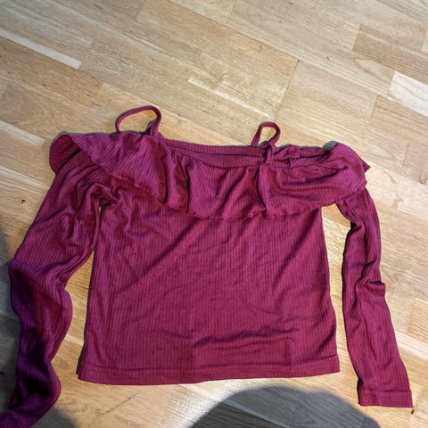 Ribbestrikket topp i bringebær rød. Mykt materialet. Brukt en gang.