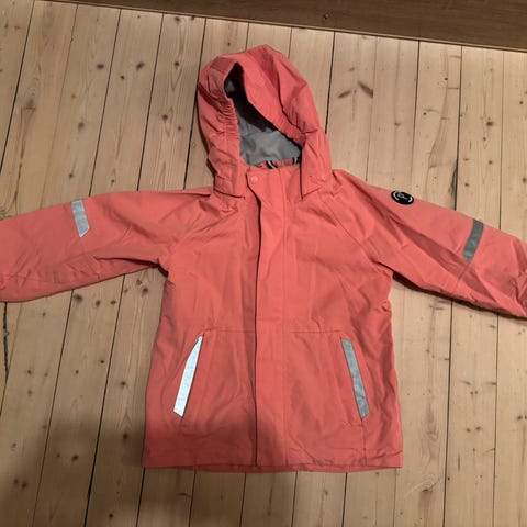 Polarn O. Pyret Rosa Jakke for barn i størrelse 110, til jente. Jakken har hette og glidelås foran, laget for å gi beskyttelse mot vær og vind.
