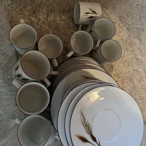 12 st kopp plus tillhörande fat