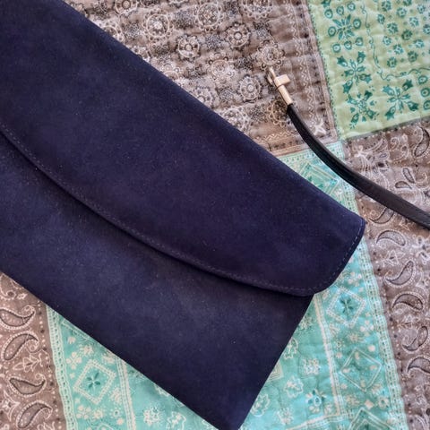 Lys grå sensket skinnveske str. 13x27 cm.Lukkes med magnet.Skulderreim.