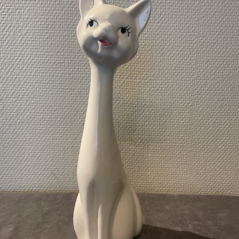 Hvit katt i krus i hel og pen stand B 12 H 24,5