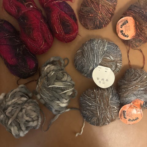 5 kveiler (nøster) med grått, forspunnet ull @ ca 100gram. 5 kveiler (nøster) med mørkebrun forspunnet ull @ ca 30 gram. Selges samlet.