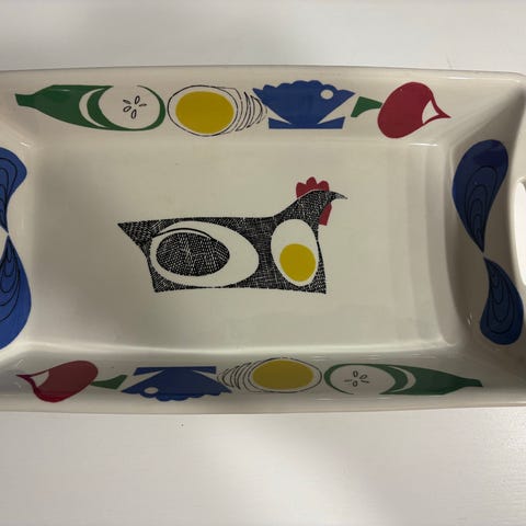 Stor pyrex ildfast form med grønnsaksdekor. Retro.