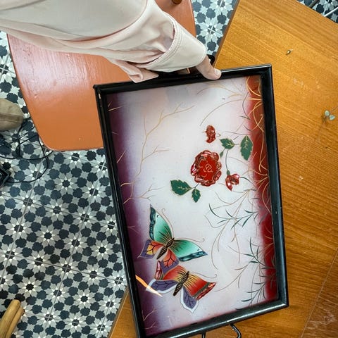 Fint glasfat kjøpt i Lofoten for eit par år sidan. Vi to og oss to. Bryllupsgave?