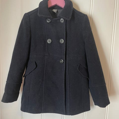 Nydelig mørkeblå ullkåpe fra Wheat. Pent brukt av ett barn.