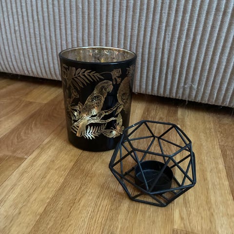 Stilig og stor lyslykt i gull og svart, ingen skader