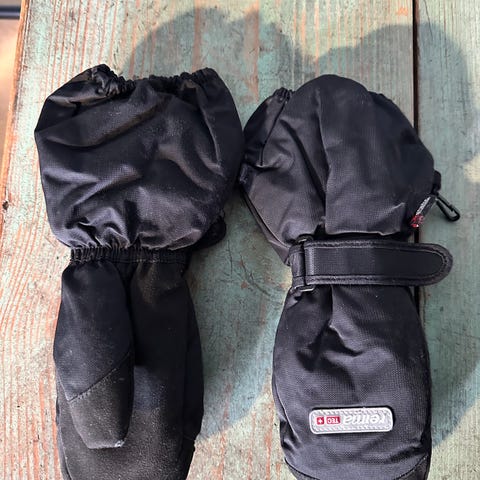 Pent brukt regntøy - noen få steder refleksen har gått opp i limingen.