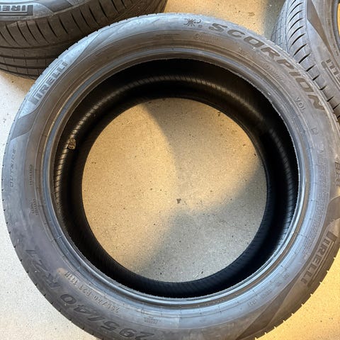 21 tommer, bredde 9,0J. Vekt pr. felg ca. 16,5 kg. Dekktrykksensor i alle felger. 4 felger med originale navkapsler. Nye januar/2025. 4 felger kjørt 6000 km med sommerdekk. 4 felger kjørt 11000 km med vinterdekk. Oppbevart hos dekkhotell. Pris pr. felg.