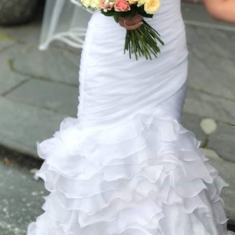 Kjøpt ny på Brudehuset i Bergen i 2020. På grunn av covid, så ble den ikke brukt. Etter siste svangerskap så passer den ikke lenger. Selger den derfor videre til noen som kan få glede av den 👰🏼