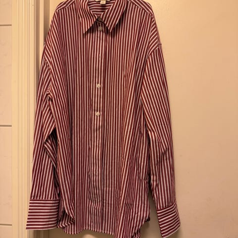 H&M Skjorte i rød farge, størrelse 44. Langermet skjorte med knapper foran, laget for kvinner.
