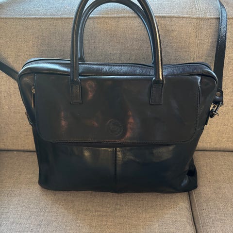 Lite brukt veske i skinn fra Filofax selges for kr.400,-. Størrelse ca 30x40cm. Kan brukes til PC, har eget innlegg til det. Skulderreim følger med. Et par små merker, men ellers i god stand.