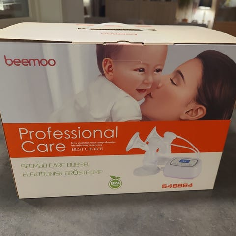 Jeg prøvde én del to ganger – den er til venstre på bildet. Siden babyen vår nektet å spise fra flaske, kunne jeg ikke bruke pumpen. Så den er nesten ubrukt, noen deler er ikke brukt og ikke åpnet.