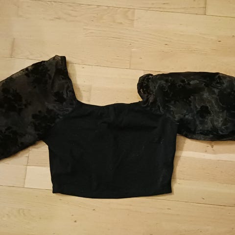 Topp med metallisk effekt, veldig myk og med delvis åpen rygg. Den har en snor rundt halsen.