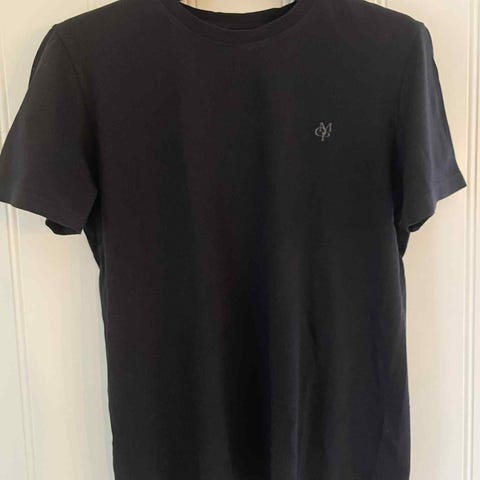 T-skjorten har rund hals og et lite brodert elgmotiv på brystet.