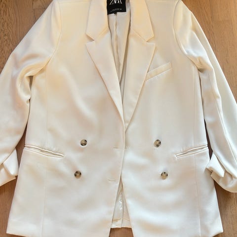 Stilig hvit blazer som også kan brukes som kjole. Elegant passform og tidløst design – perfekt både til hverdag og fest. Nesten ikke brukt og i veldig god stand.