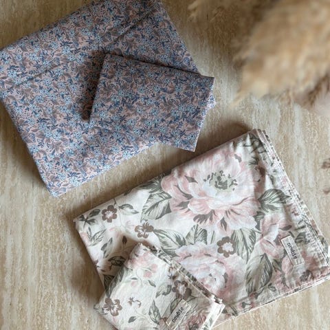 Mange fine sengetøy som passer til sprinkelseng/vogn. Pent brukt, ingen anmerkninger som jeg kan se.