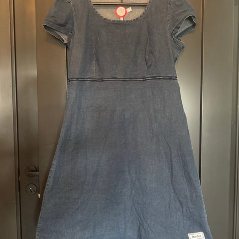 Pen hverdagskjole i mykt jeans-tøy så det strammer ingen plasser😃 Kjolen er sydd av en lokal sy-dame og har ikke noe merkenavn.