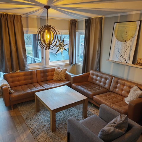 Pent brukt skinnsofa fra Stockholmserien til IKEA. Ekte skinn. Har stått på lite brukt loftstue, som nå skal brukes av barn og blir da lite egnet. Må hentes, står i 3. etasje i enebolig.
