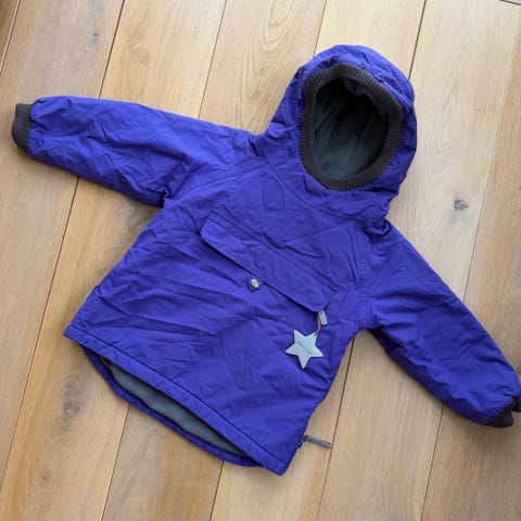 God og varm vinterjakke fra Mini a ture. Foret.I utmerket stand, ingen hull eller skader. Vindtett og tåler vann. Perfekt jakke til høsten.