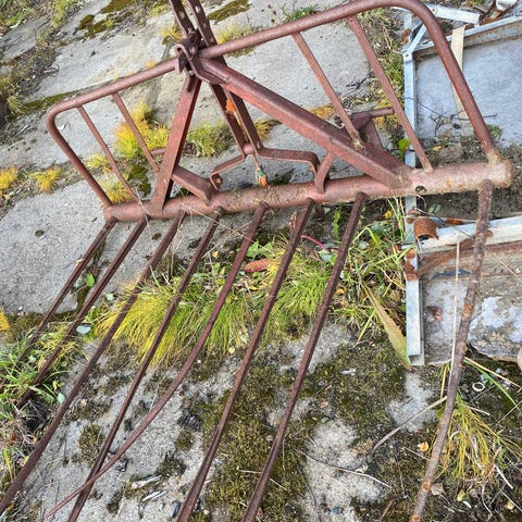 Gammel fjærharv for hest gis bort. Ikke vært i bruk siden 1980-tallet. Må hentes i Holandshamn eller på Vestvågøy.