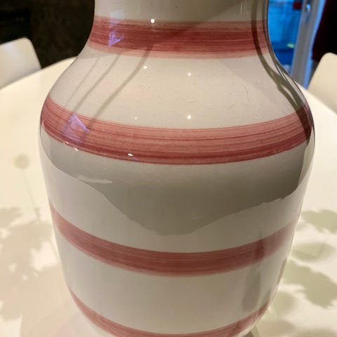 Stor og flott Kahler vase med rosa striper. Høyde 30 cm.