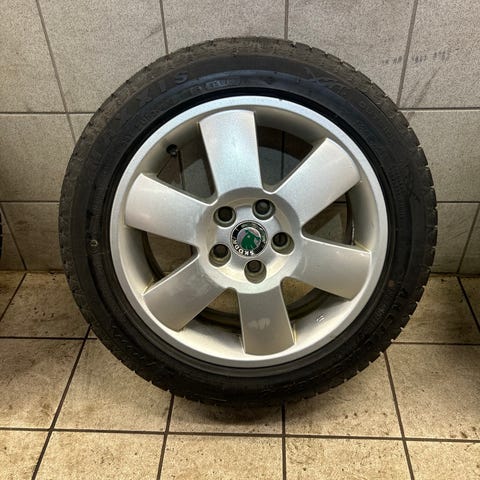 4 stk originale Skoda Pegasus 18 tommer felger med piggfrie vinterdekk kjørt en sesong, ca 6000 km. De har stått på Skoda Suberb (gen 3) 2016 mod. Felgene er i god stand. Noen bruksmerker er der.