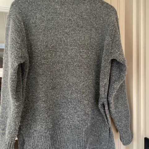 Genser med halvhøy hals i 70% merino og 30% jak. Det er str M, men passer opp til str xl som jeg vanligvis bruker. Deilig kvalitet, myk og god. Blir desverre bare liggende i skapet.vanskelig å gjengi fargen, men den er jeansb med litt grått