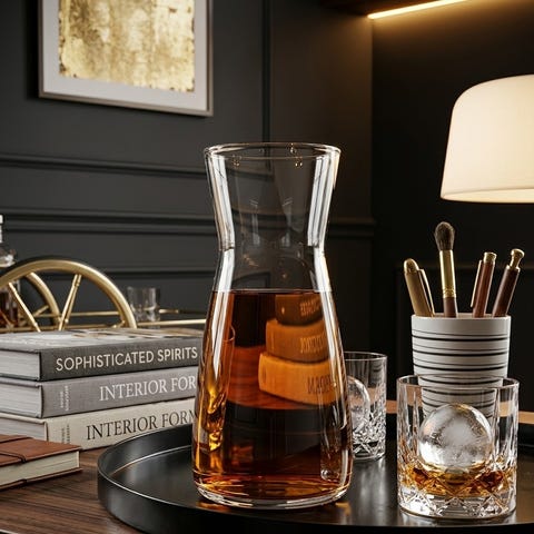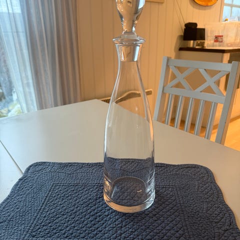 Flott Glass karaffel med en høyde på 20 cm. Karaffelen er laget av klart glass og har en enkel, funksjonell design. Egnet for servering av Wiskey, Aquavit, vann, vin eller andre drikker.