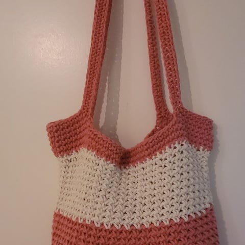 Først hekles det 18 bestemorsruter som sys sammen 3 x 3 til 2 sider, 1 forside og 1 bakside. Videre hekles en lang remse til sidepanel og bunn som festes til forsiden og baksiden før det hekles hanker. Til slutt sys sidepanel og bunn til forsiden og baksiden.