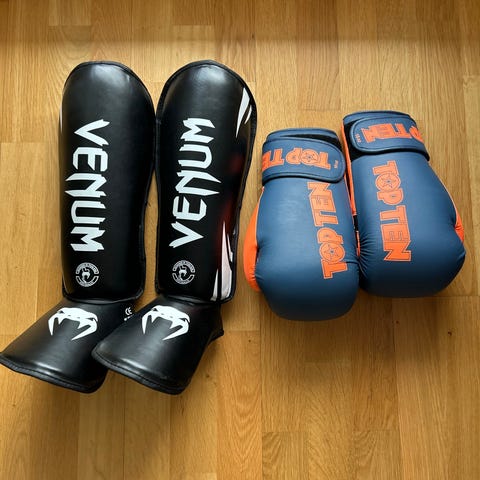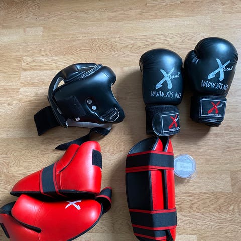 Bokse/thaiboksing utstyr .leggbeskyttere bare brukt et par ganger og dette utstyret kan regne som nesten nytt