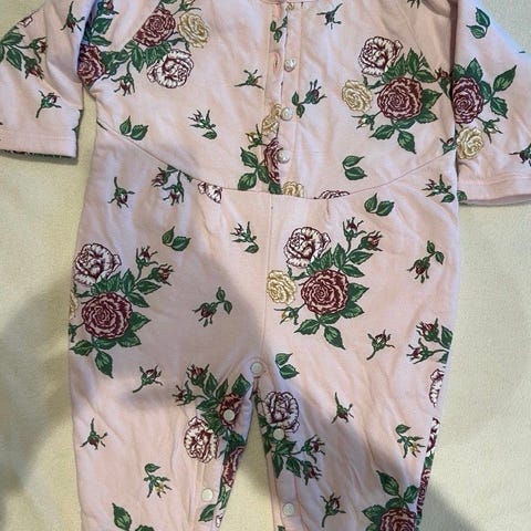 En blå vattert utedress med ‘løse’ sokker og hette selges. Den har også fleece votter ‘integrert’Dette er en dress som vil passe ca en 1-2 åring. En superfin og praktisk dress fra Lindex.