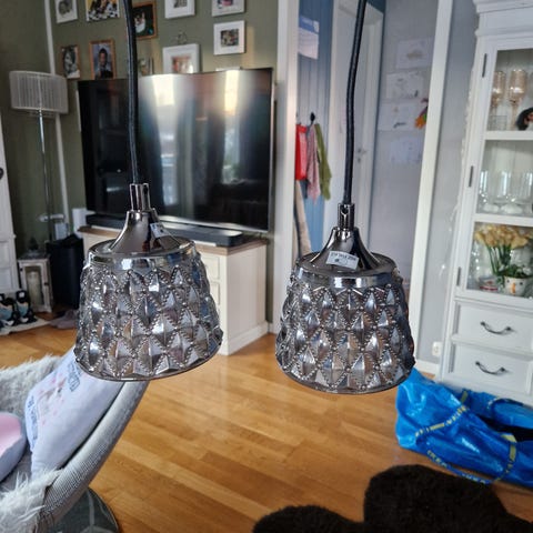 Kan henges på krok i taket, eller i vinduet. Varm glødepære følger med.