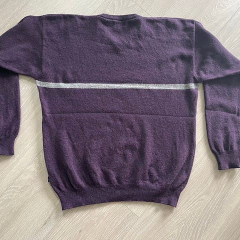 Meget pent hjemmestrikket ullgenser. Str 14-16 år (S-M)