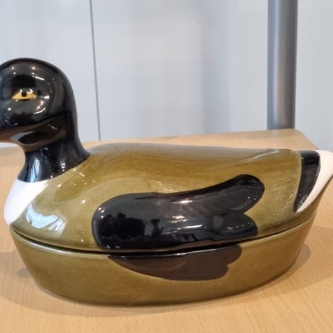 Det er noen små nag i glasuren ellers hel og fin med normale bruksmerker