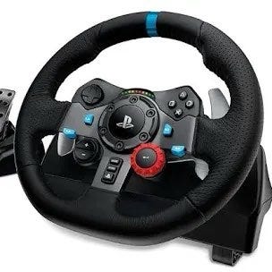 Logitech G29 Driving Force ratt og pedaler i svart. Kompatibel med PlayStation og PC. Rattet har en diameter på ca. 27 cm og er laget med skinn for bedre grep. Inkluderer tre pedaler for gass, brems og clutch, samt en separat girspak. Egnet for bilspill og simuleringer.