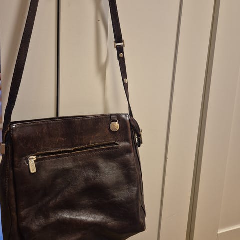 Vesken er brukt ,men forsiktig. Den har mange rom og lommer. Størrelse er 33x33 cm. Den er ikke veldig slitt. Jeg sender helst ikke. Vesken kan hentes Oppsal senter 50 m fra T banen.