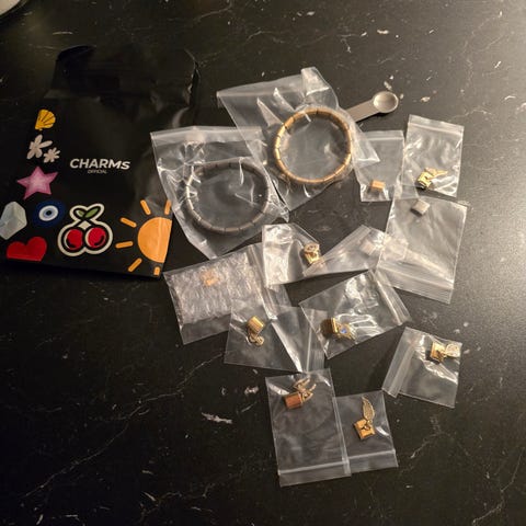 3 armbånd i mykt lammeskinn. Det ene ekstra. Magnet lås i rustfritt stål/ nikkelfritt de er 22 cm lange. Pynten er forskjellige, 10 stk av dem. noen i swarofsky krystaller. M.m disse kan alle knipses av og brukes på andre smykker.. Fin gave med ett og ett smykke..kjøp gjerne en , og velg dine charms. Prisen blir vi enige om. Frakt tilkommer.kr 450 er for alt