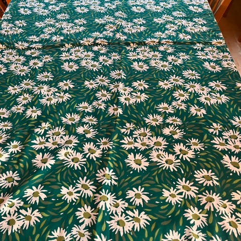 Original 70-talls syskrin i rotting, blomstrete stoff