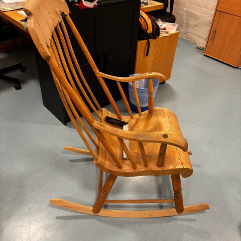 Gyngestolen er solid og komfortabel, og passer perfekt i stue, lesekrok eller hytte – både som et møbel og et blikkfang.