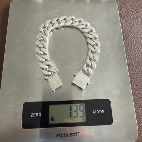 Kraftig og solid sølv armbånd stemplet 925. Lengde er 24,5 cm. Bredde 1,5 cm