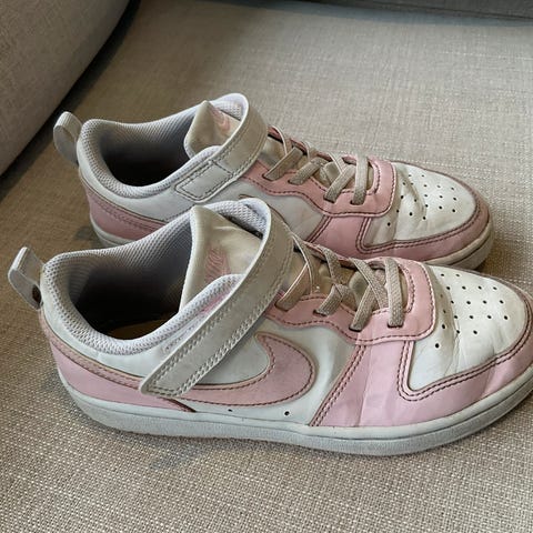 Puma Barina unisex barne sneakers i størrelse 35. Skoene har en kombinasjon av rosa og hvit farge, med borrelåslukking og snøring for enkel tilpasning. Materialet består av syntetisk lær og tekstil. Sålen er laget for godt grep og komfort ved bruk.