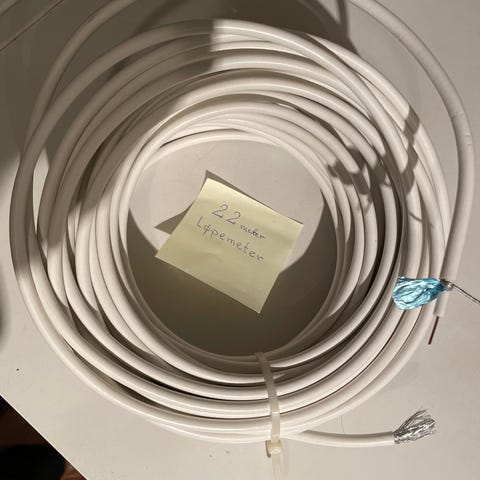 Uåpnet antennekabler, 4 ruller a 25 meter med kontakter. Selges for 150. Kan selges enkeltvis om ønskelig.